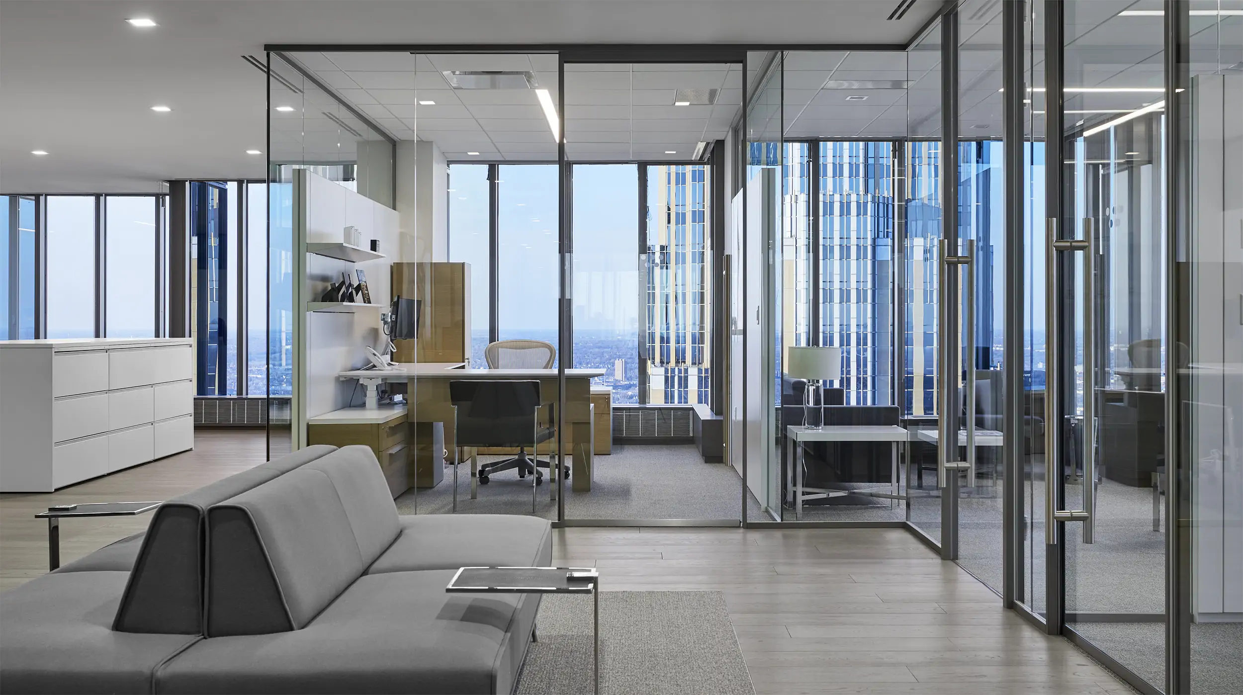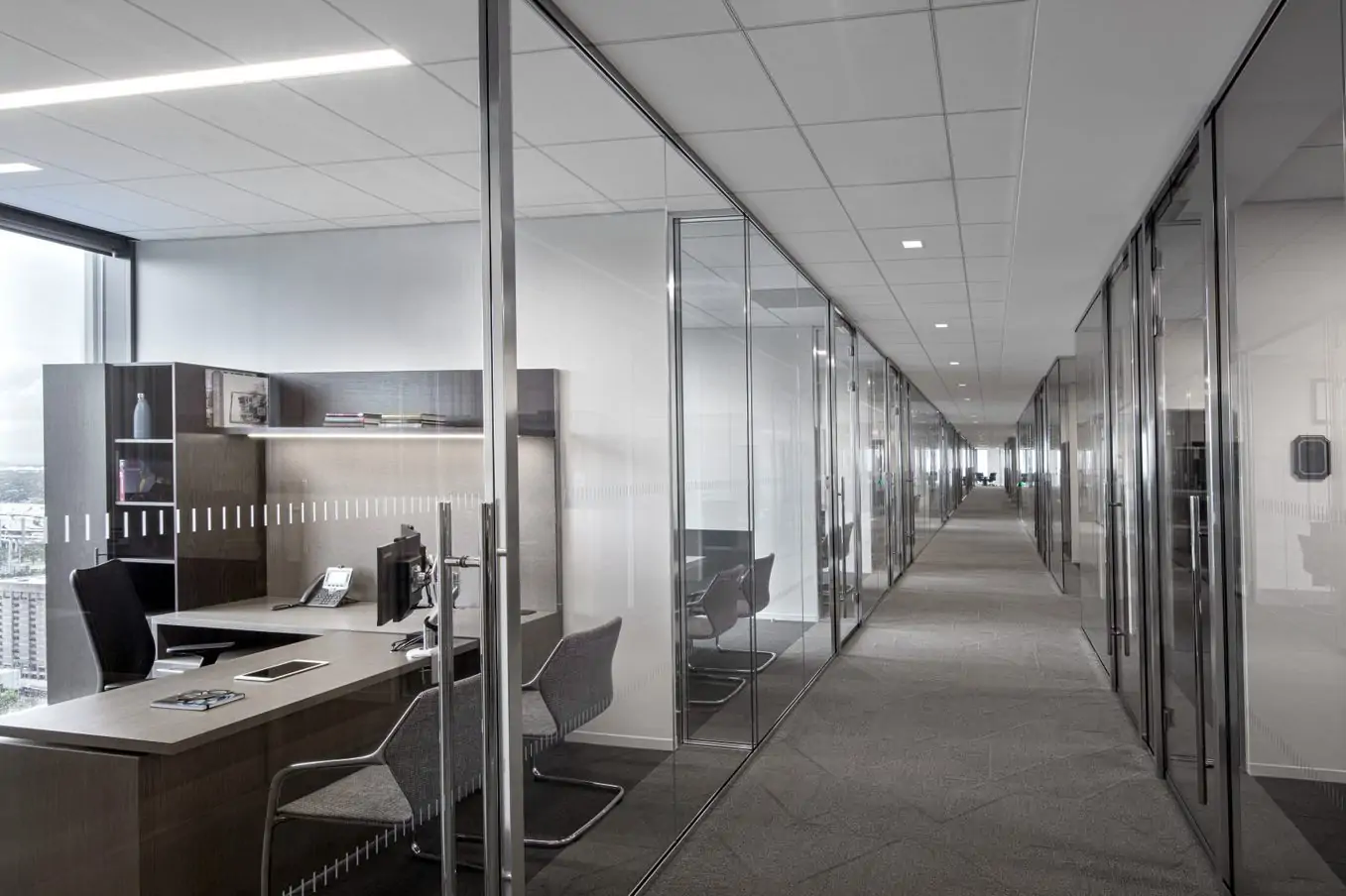 Maars na nowo wynalazł jednoszklone ściany działowe z naszą linią produktów Horizon. Ma minimalną wysokość profilu i może być płynnie połączony z naszymi innymi systemami ściennymi. Skutkuje minimalistycznym ogólnym designem z usprawnionymi połączeniami. Cienki wygląd Horizon można łączyć z wyższą wydajnością akustyczną. Double Horizon to dwuszklana ściana działowa o wyjątkowej wydajności akustycznej.
