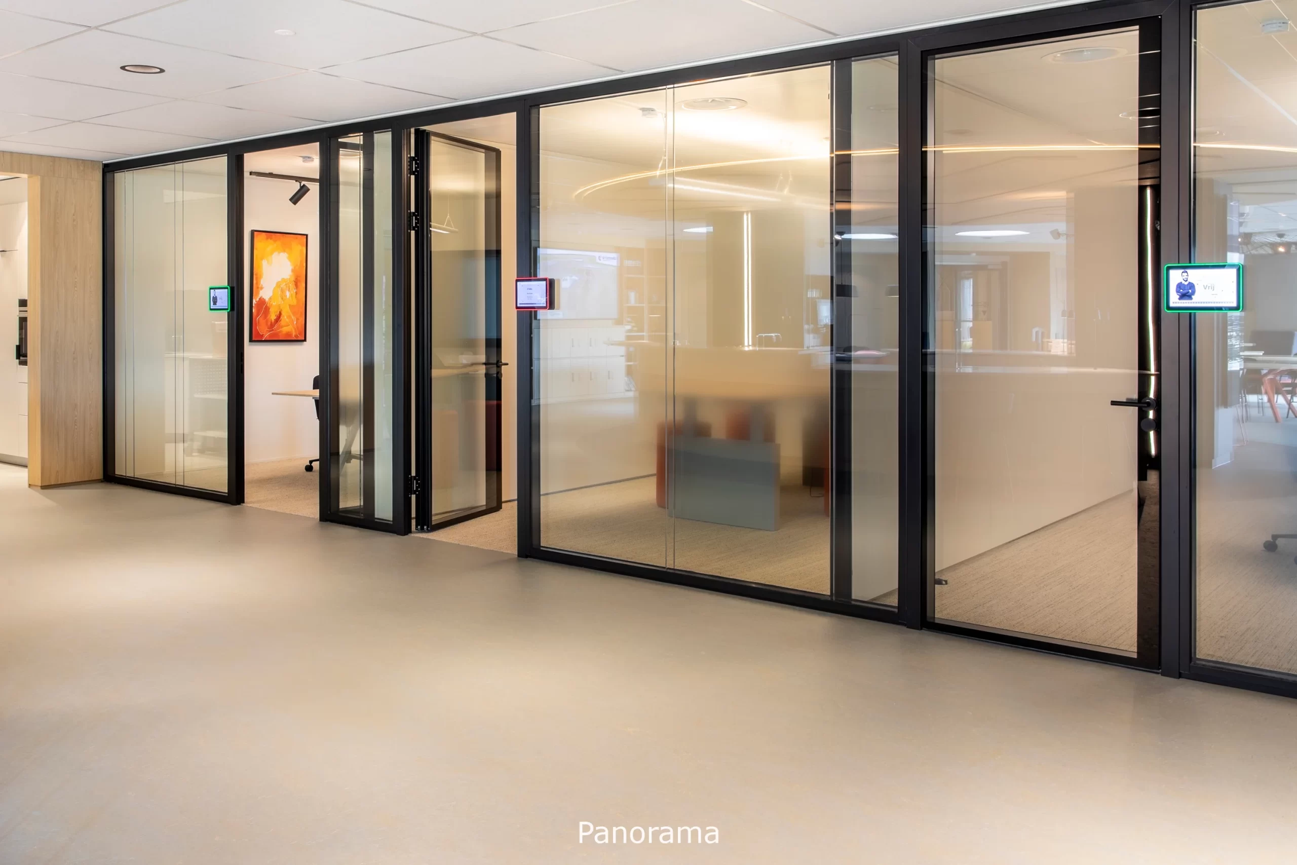 Minimalistyczny design, maksymalna przejrzystość. Panorama to system ścienny, który zapewnia maksymalną przejrzystość, wydajność i elastyczność. Podwójna przeszklona ścianka działowa z unikalnym, opatentowanym połączeniem zatrzaskowym. Całą ścianę można łatwo rozmontować. Panorama charakteryzuje się brakiem widocznych wiesi i pionowych profili.